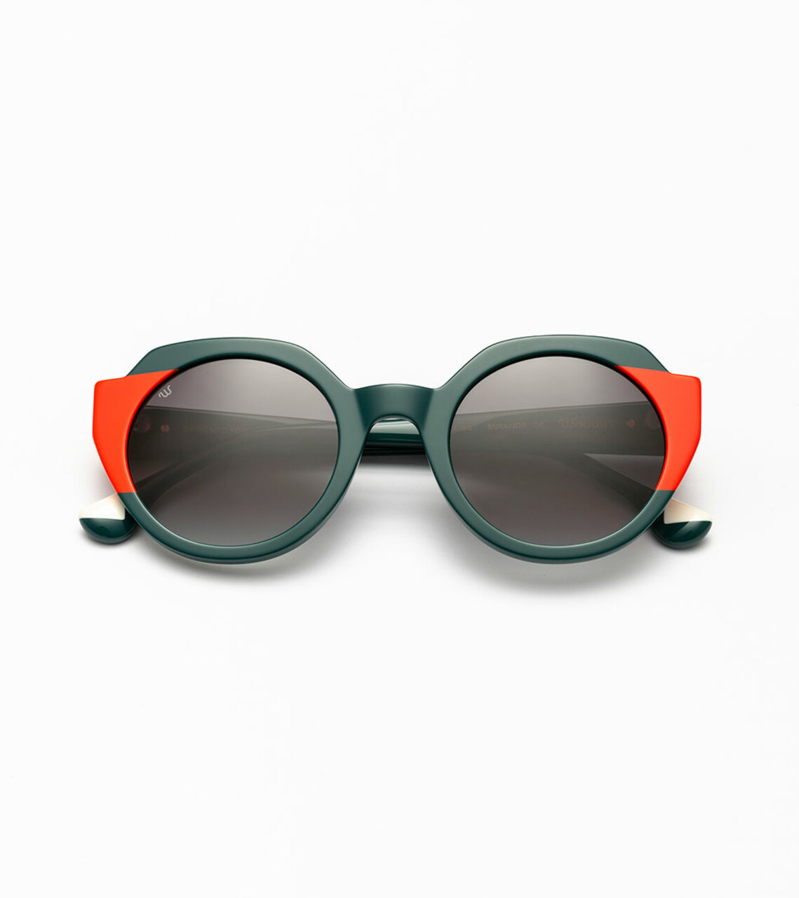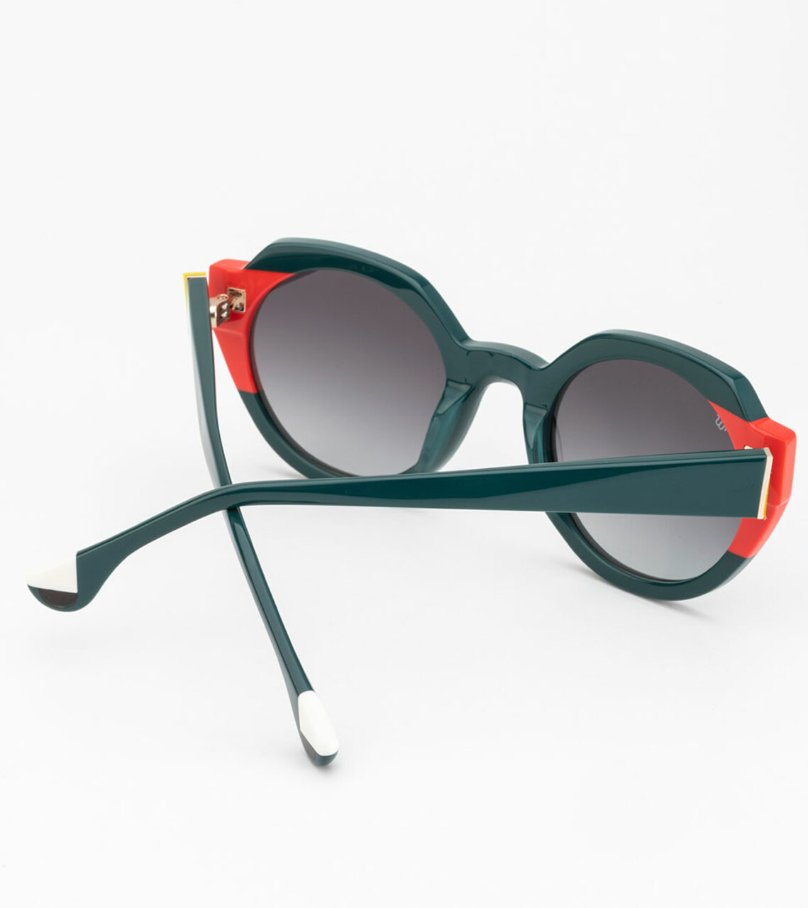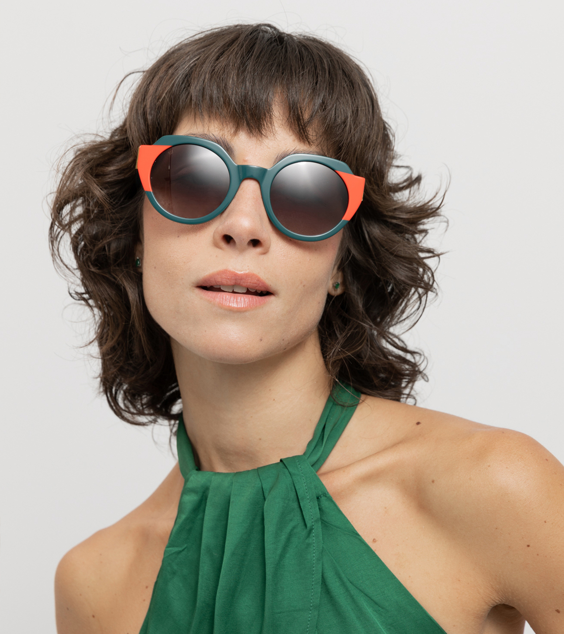 Este modelo de sol pensado para mujer elaborado en acetato italiano laminado de gran calidad y bisagras alemanas de cinco ejes. Sus lentes degradadas CR39 ofrecen la máxima protección UVB y un gran confort visual.